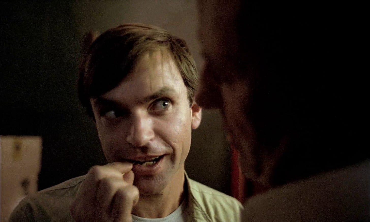 It’s the attempt to literalise the scale of emotional disorder that urges Zuławski to launch himself beyond the bounds of the real. Possession’s scale of feeling risks at times derailing the story. Case in point: the infamous subway scene, where Anna flails, possessed by a monstrous miscarriage, overcome from a profusion of blood and slime that leaks not from orifices but from her being. Unsubstantiated rumours abound that this film took the actors to the brink of sanity. Whether these rumours are true, they seem to describe the expansion of the acting beyond the bounds of mere performance. The scene, presented outside of narrative order and without precedent, acts like a cameo locket of pain. Throughout the film, there’s a sense of the actors being offered free reign to channel something beyond their characters. At times, especially in its final third, this means that scenes become undissolved and showcases for acting ‘choices’.